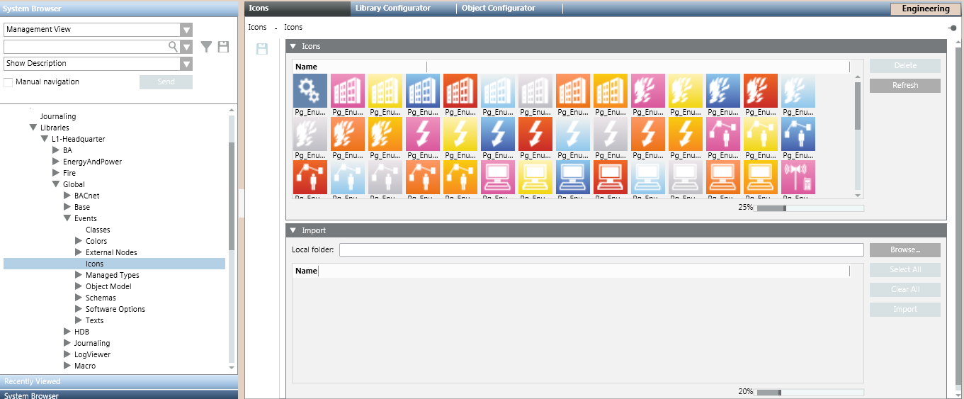 The Icons library block under L1-Headquarter > Global > Events is basic configuration provided by Headquarter that can be modified by Headquarter experts and Customer Support only.