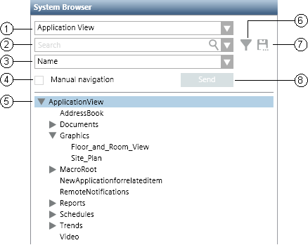System Browser displays objects in the management platform through various views, and also supports searching and filtering.