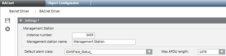 1. Enter the Instance Number assigned to the driver as a BACnet client for Desigo Automation (for example, 3459). This number must be unique on the UDP network.
