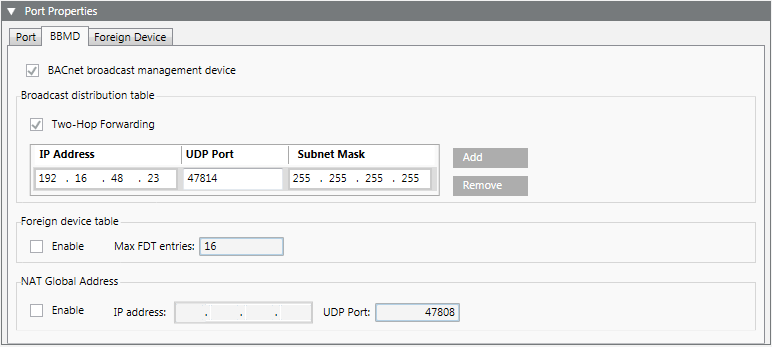 1. (Optional): Depending on the Topology application, a BBMD or Foreign Device must still be configured: