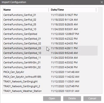 The saved room configuration can be imported in the event of a wrong configuration; this restores a previous state. Unneeded room configurations can be re-deleted.