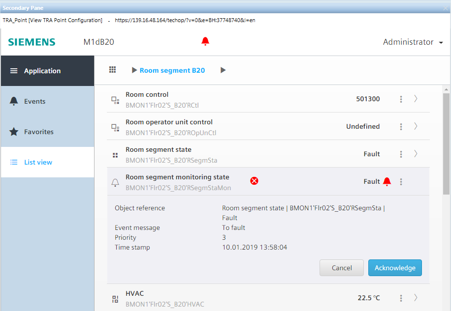 NOTE: The alarm can be acknowledged directly in the Command column.