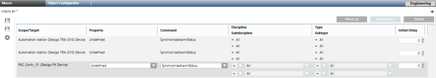 1. In the Command column, select the option SynchronizeAlarmStatus from the drop-down list.