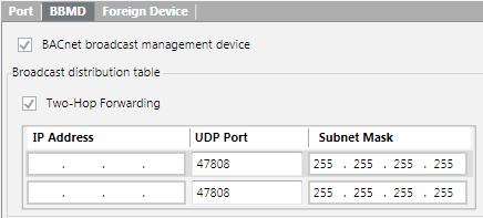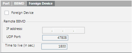 Management platform and Desigo automation stations are available on different IP segments. The management platform is entered as a participant in the FDT (Foreign Device Table) on the automation station using the FD (Foreign Device). Only IP automation stations are integrated on the BACnet network.
