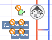- Left-click and hold, then right-click until the pump symbol displays in the desired direction.