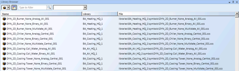 In the Graphic Templates Browser’s List view, the graphic templates are listed by Name, Library, and File. A thumbnail preview is not displayed.
