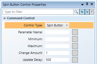 1. In the Update Delay field, leave the default value of 500 (milliseconds). This field displays the time, in milliseconds, that it will take to update the value from the last click the Spin button command control.