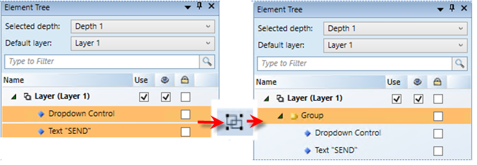 • Text “SEND” and Dropdown Control are now children of the Group.