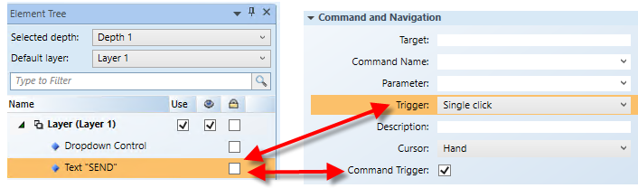 • Navigate to the Element Tree view, select Dropdown Control and hold down the CTRL key and then select Text „SEND“.