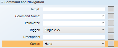 1. With the dropdown command still active on the canvas, navigate to the Command and Navigation property, from the Cursor drop-down menu, select the cursor type you want to display when the mouse is placed over the command control in runtime mode.
