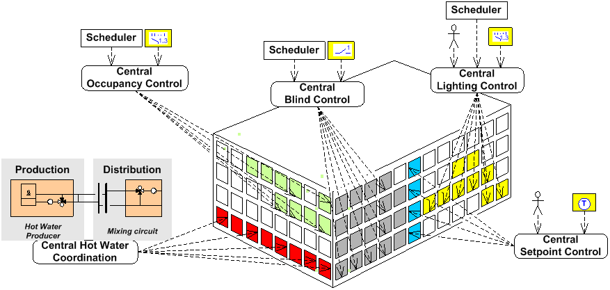 • Central hot water/chilled water coordination (Optimization of primary plants, supply chain optimization).