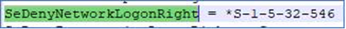 - Open initial.cfg in an editor such as Notepad and locate SeDenyNetworkLogonRight.