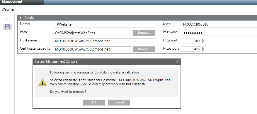 [Installation Drive]:\[Installation Folder]\GMSMainProject\_tmpGMSWebSite\devices and the access entry is access = rw”, where r = read, and w = write permissions. In the Permissions section of the Add authoring Rule dialog box, you must select the Read and Write check boxes.