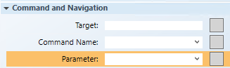 • Parameter You will enter the information under this heading in the Parameter field of the Configuration and Navigation properties and in the Parameter Name field of Command Control properties section. See table below.