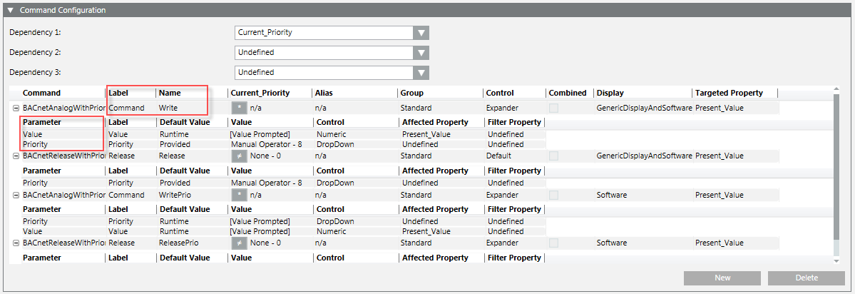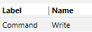 • Name – You will enter the information under this heading, or select it from the drop-down menu, in the Command Name field of the Configuration and Navigation properties. See table below.