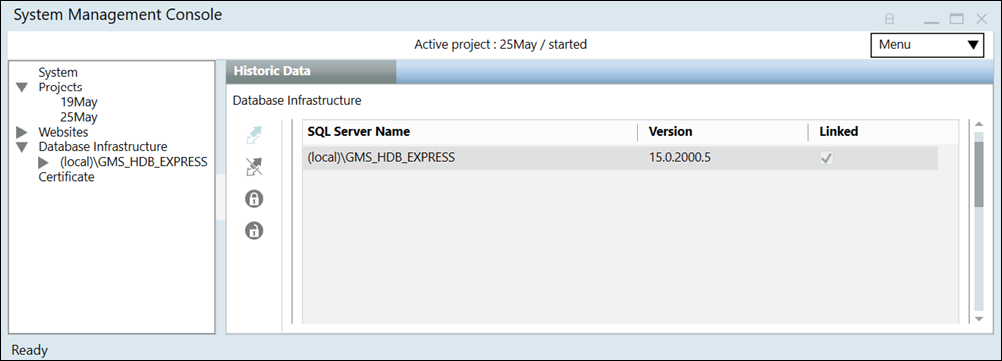 • The History Database is created and displays in the SMC tree. This may take a few minutes depending on the selected database size. When you create a new HDB it gets automatically linked to the SQL Server. However, if the History Database creation fails due to mismatch in the localization settings, see troubleshooting.