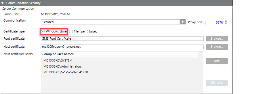 - To secure the Web Server communication, the certificate must be available in the appropriate Windows Certificate store.