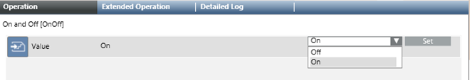 When you select an organization mode object in System Browser (for example, On and Off), you can view the current value of an organization mode in the Operation or Extended Operation tab, and also manually set its value from there.