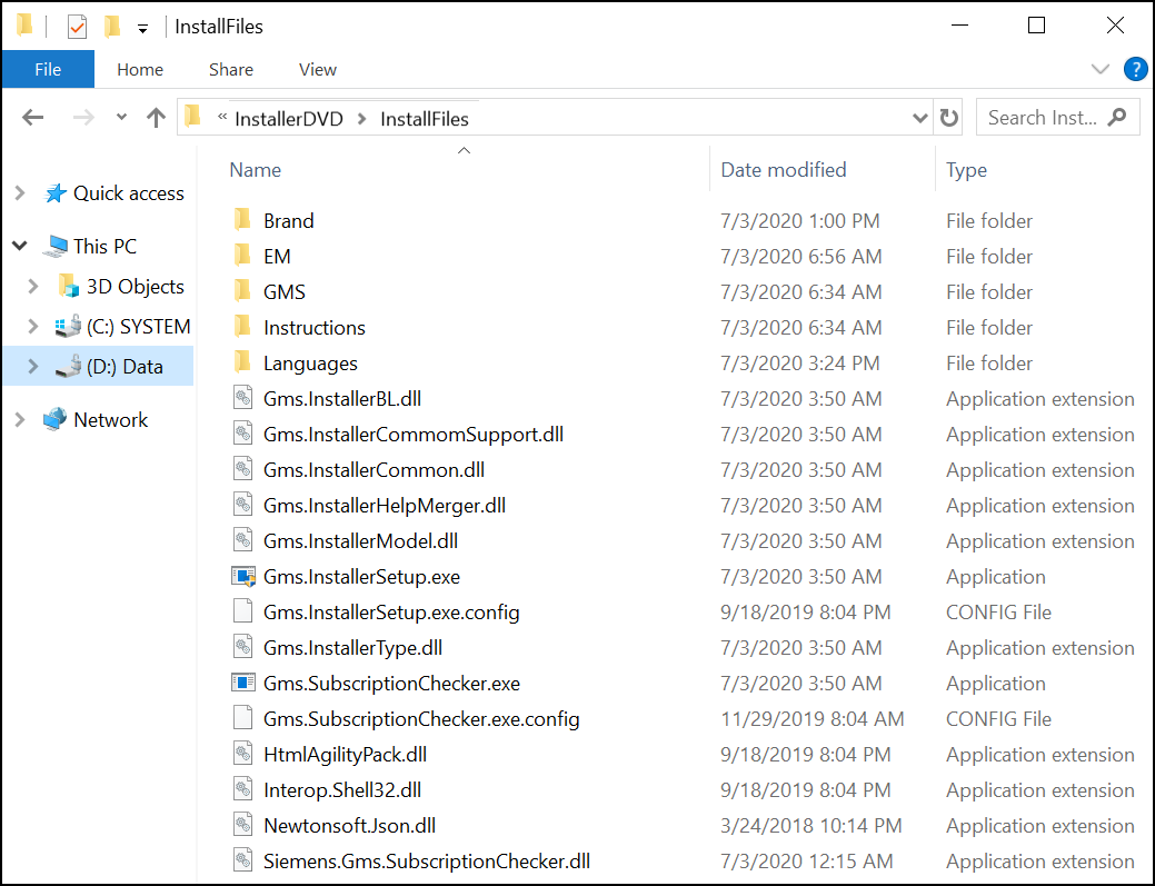 - Custom (Run the Gms.InstallerSetup.exe file located in the InstallFiles folder and provide the required information in the Installer Wizard).