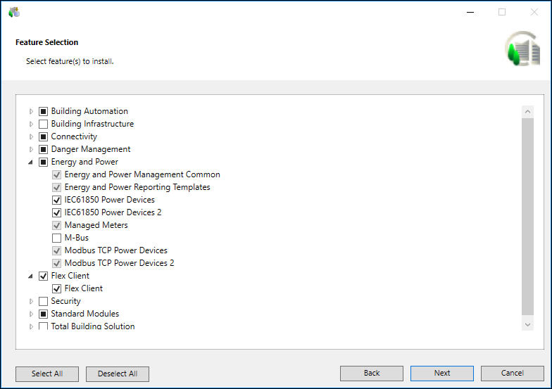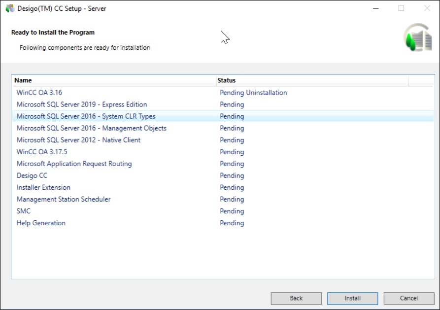 - Desigo CC, along with the existing extensions, language packs, and the prerequisites, is upgraded, and the newly selected extensions and language packs are installed.