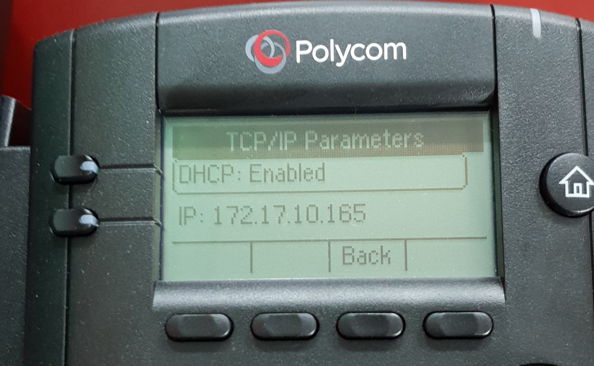 NOTE: By default, the phone is configured for Dynamic Host Communication Protocol (DHCP). To determine the IP address, press Menu on the phone and select Status > Network > TCP/IP Parameters.