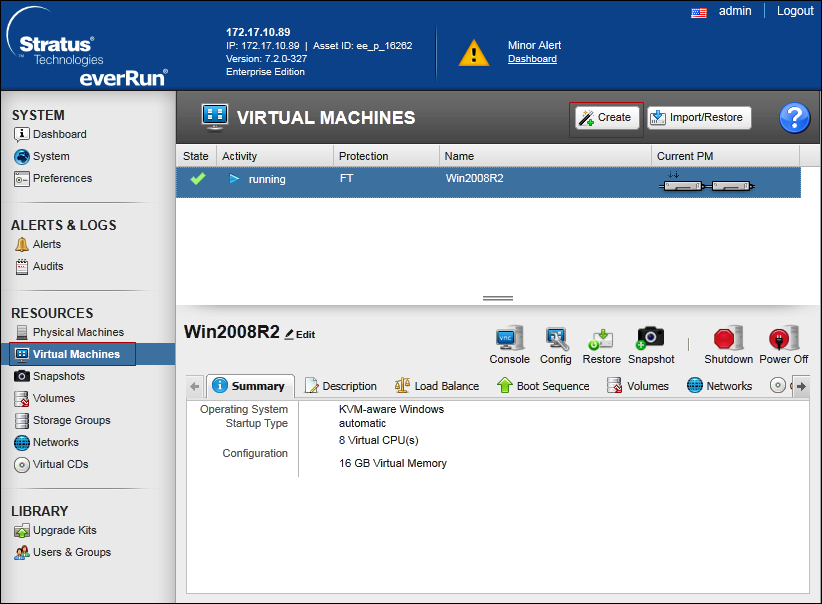 - Virtual Machines are created and protected with everRun 7.2.