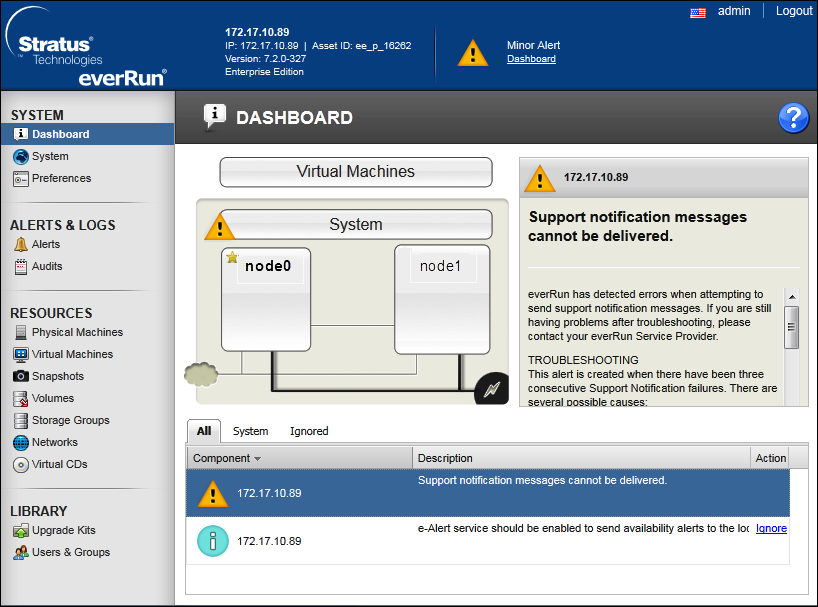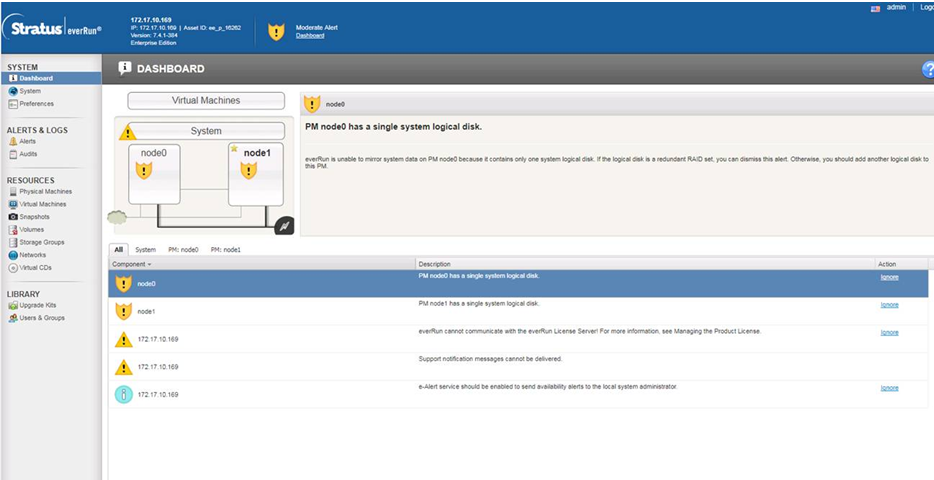 - The initial logon is complete, and the everRun Availability Console displays.