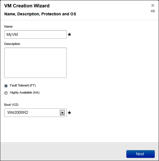 - Enter the name and an optional description for the VM as they will display in the everRun Availability Console.