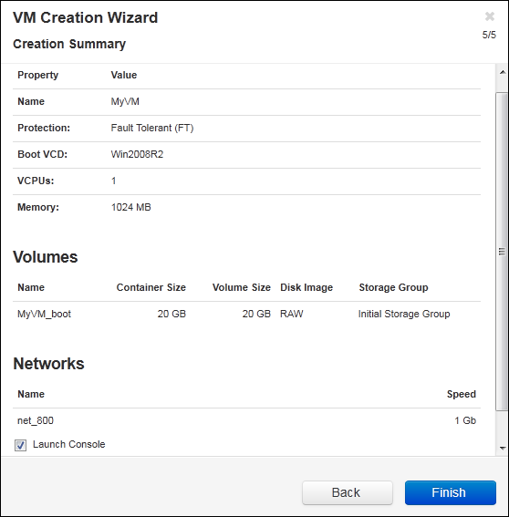 - To accept the VM as provisioned and begin the software installation, click Finish.