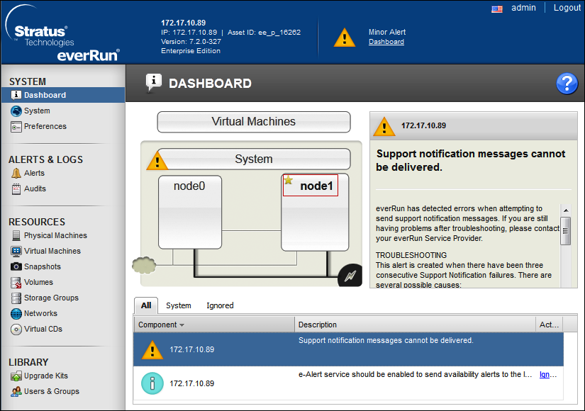 See the Managing Local User Accounts section of the everRun’s User’s Guide. The DASHBOARD of the everRun Availability Console displays node0.