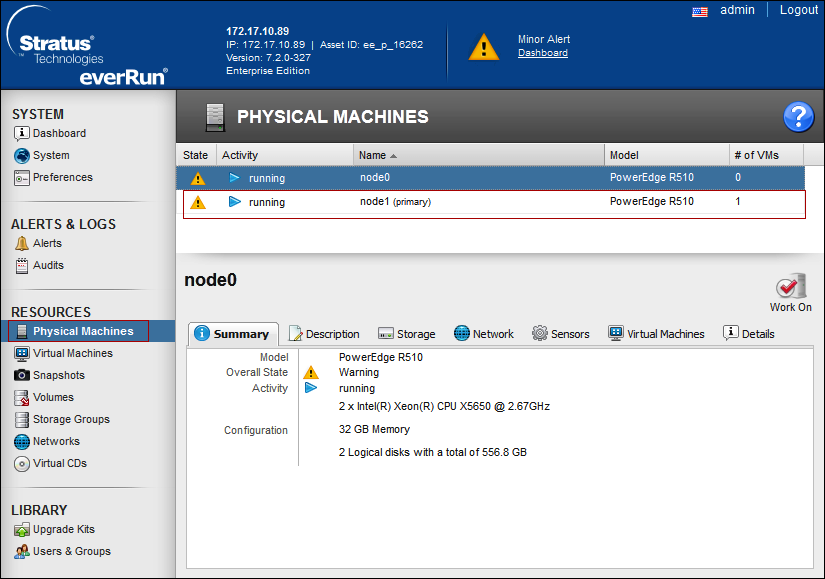 See The Physical Machines Page section of the everRun’s User’s Guide.