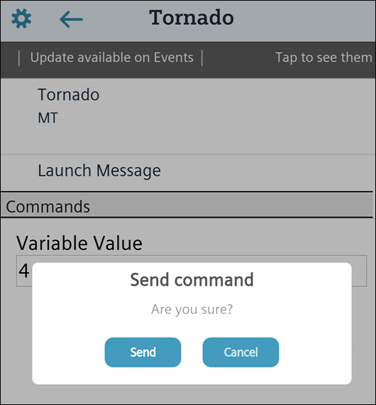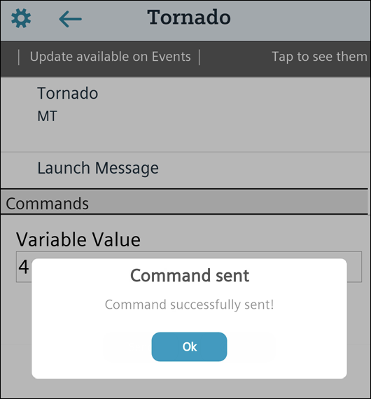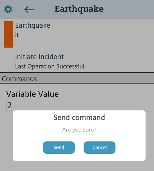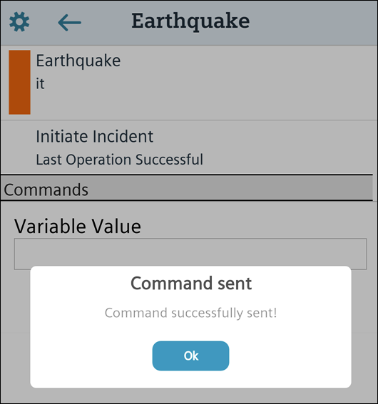 The selected incident is initiated. All commands in Notification are visible in Mobile App.