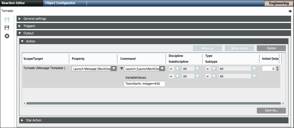 1. Open the Output expander and thereafter open the Action expander.