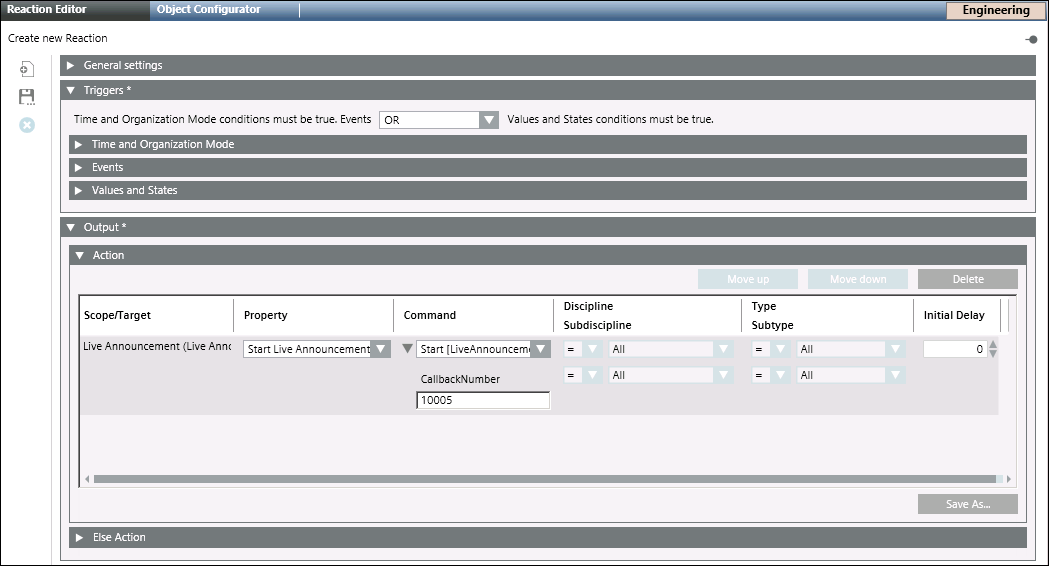 NOTE 1: To launch a live announcement using Reaction, it is mandatory to either specify the call specific number (in the Source field) while configuring the live announcement template or specify the CallbackNumber in the Reaction Editor tab.