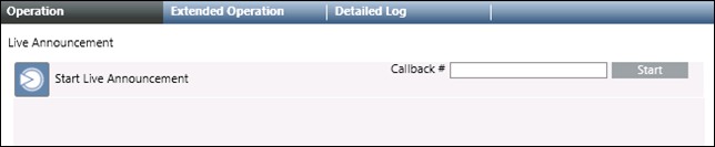 1. Click Start to start the live announcement (as part of an ad-hoc incident) and call the operator back, either on the operator’s registered phone number (by using system user details), or on the alternate callback number provided by the operator.