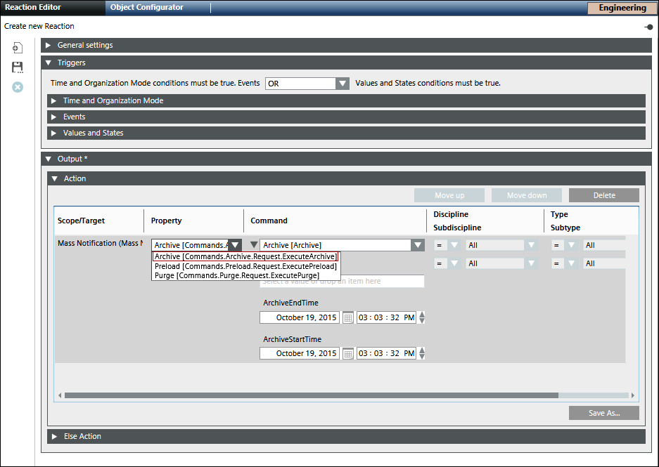 1. From the Property drop-down list, select Archive [Commands.Archive.Request.ExecuteArchive].