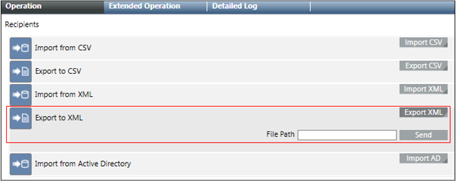 • Send: Exports all recipients in the Notification to an XML file specified in the File Path.