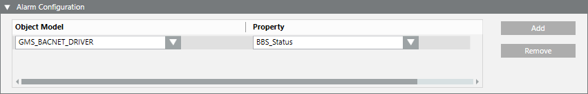 - In the Associated Properties list of the Properties expander, select the associated property for which you want to define the alarm configuration to be propagated.