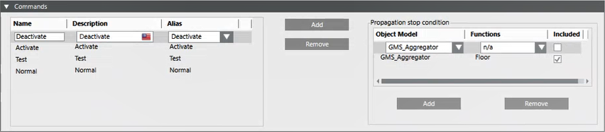 In this step you will configure the commands that will be propagated downward for the associated properties as well as the stop conditions that disable commands starting from a specific upward level.