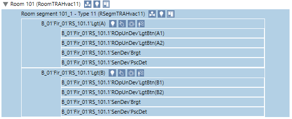 13 | Assignment list Detailed information is displayed in the room information list depending on the control type, i.e. HVAC, lighting, or shading. Double-click to display the corresponding references in the room information list. | ||