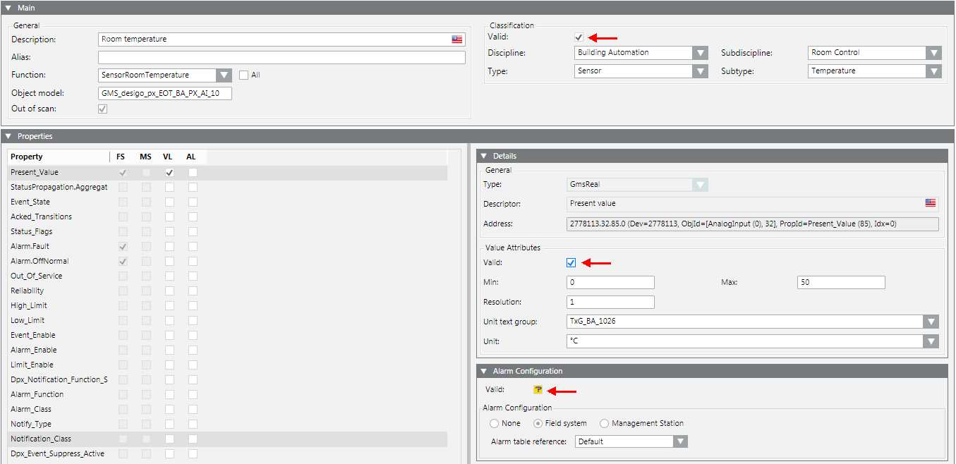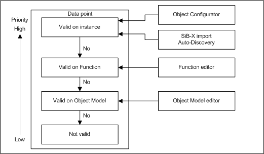 • If Valid is set for an instance (gray check), the information has a higher priority than the information for the functions or the object model.
