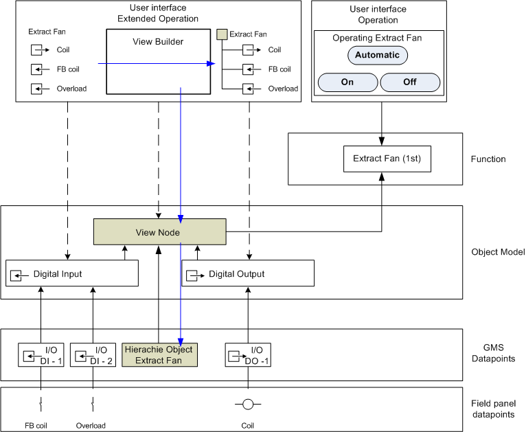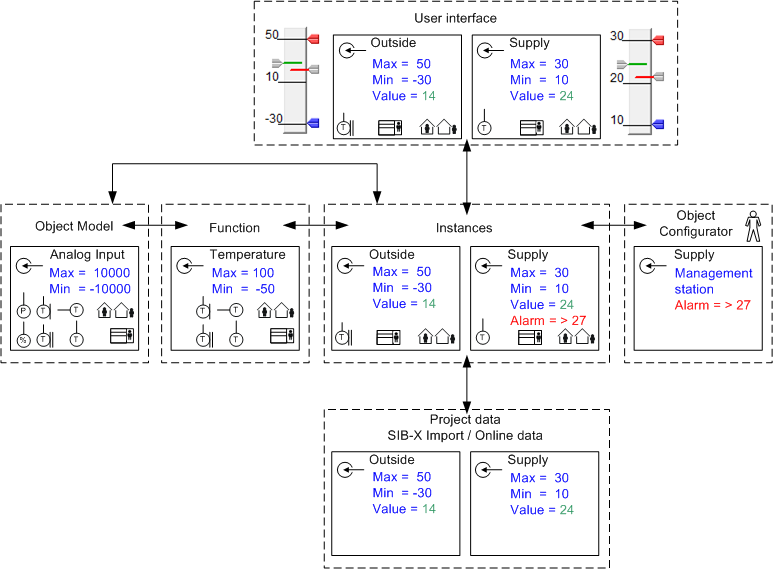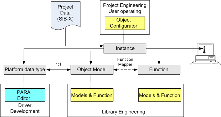 Instantiated objects for individual subsystems are always related to an Object Model and a Function. This concept ensures that the user experiences the same operating and monitoring philosophy for the same or similar Functions.