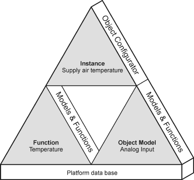 We need the following to integrate a system in Desigo CC: Interrelated Object Model, Function, and Instance. All created objects are saved as data points in the platform data base.
