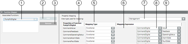 The mapping algorithm starts at the current object and looks for an object with this Function assigned in all child objects in the view selected in View type used for mapping. Mapping to a specific property of such a Function is possible after such an object is found. Then, the property of this Function is mapped to the associated object using the Function Mapper.