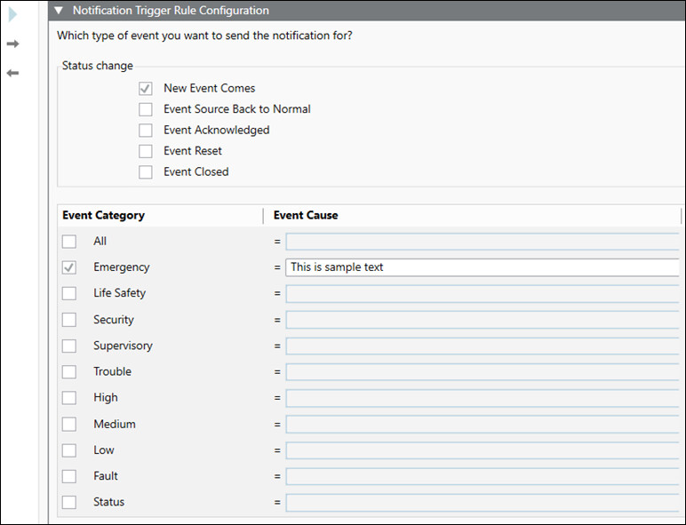 Select the desired option from the Status change section. The default selection is New Event Comes.