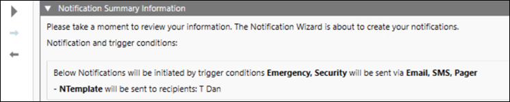 Review the information for accuracy. If you need to modify any of it, click Previous page until you arrive at the location where you need to modify information, and then resume your Notification Wizard steps until you are satisfied with the configuration.