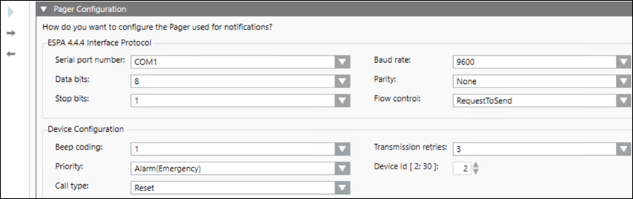 If you select Create new ESPA 4.4.4 Interface device and click Next page . The wizard displays Step 5. Go to Configure the Pager Setting step.