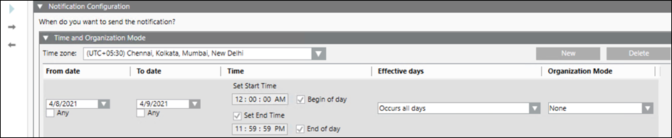 Click the Via Email checkbox for sending notification through Email. This is the default selection. Do one of the following: