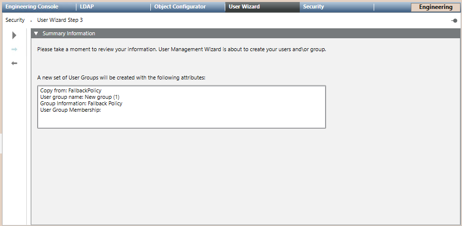 You are in the User Management Wizard step 3 – Summary Information.